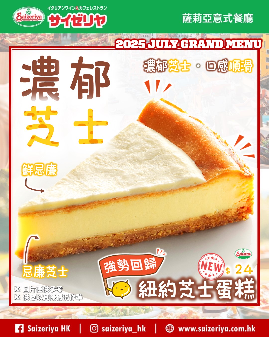 外賣自取外賣自取現已全線登場,預先自助落單。更方便・更快捷 如有任何爭議,本公司保留最終決定權 | 系統不支援微信/支付寶/八達通程式的二維碼掃描器。請使用手機內置或其他掃描器下單 一切以分店實際情況作準 | 成功付款後,訂單的預計完成時間約為30分鐘,實際時間請向店員查詢 ⇩點擊下圖,立即下單⇩ 餐牌食物供應視乎個別分店而異,以分店實際情況作準。詳情請向分店店員查詢 推廣 堂食 外賣 午市套餐 冷凍食材 最新消息 【濃郁芝士】紐約芝士蛋糕 (全線分店・現正供應)09/10/2025 【意大利餐酒推介】奇揚地紅葡萄酒・白帶泡葡萄酒 (全線分店・現已登場)06/10/2025 【人才招募】南昌飲食業招聘會(10月6日)29/09/2025 更多招聘站