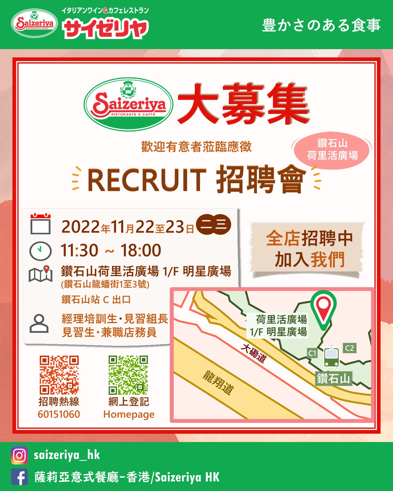 【人才招募】RECRUIT 荷里活廣場招聘會(11月22-23日 11:30-18:00) 為擴張到200間分店做好準備🙋🏻♀️🙋🏻🙋🏻♂️!…