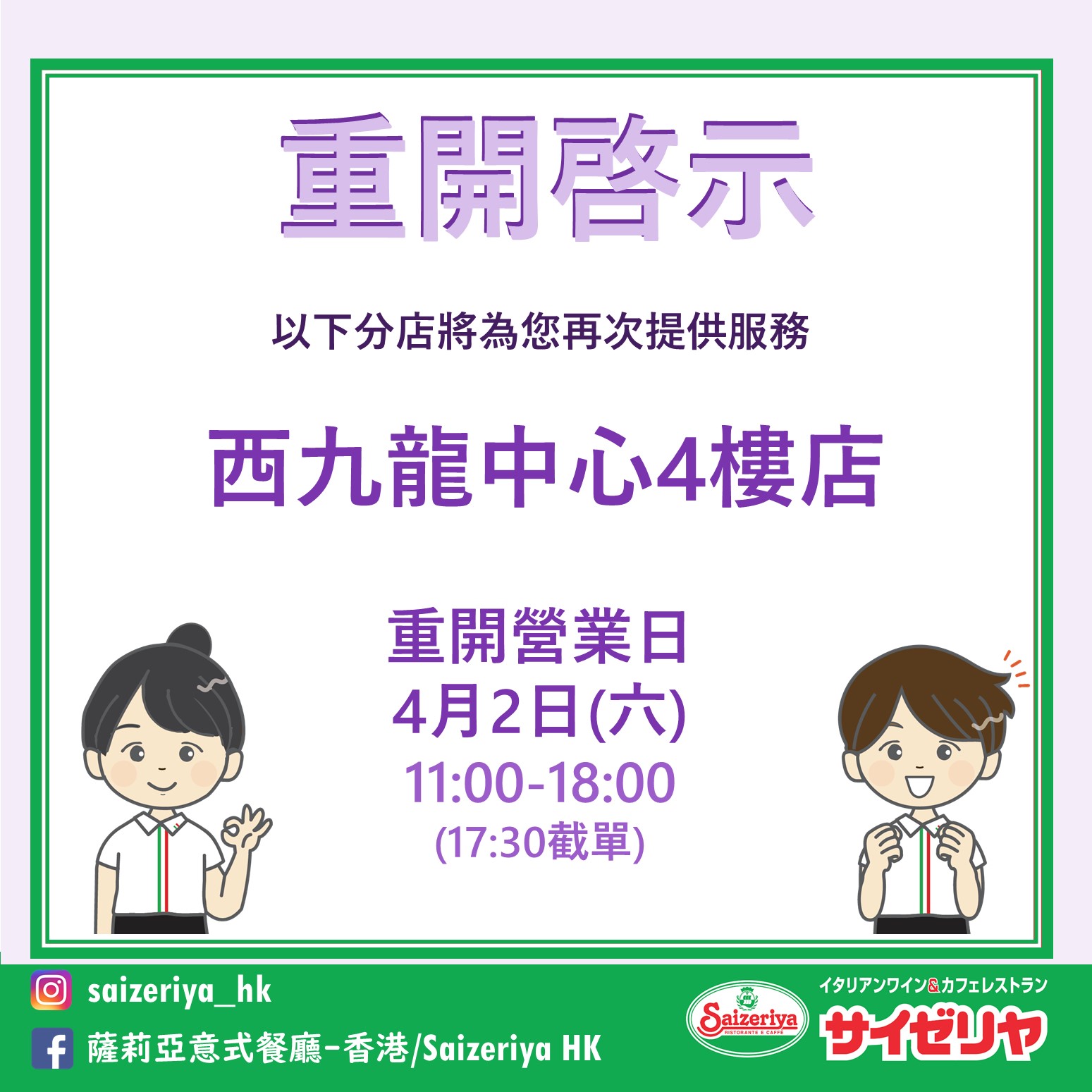 【重開啓示】西九龍中心4樓店 (4/2重開) 感激您一直以來的支持🥰 【西九龍中心4樓店】已完成內部翻新,將於明天重新為您服務 🕡重開營業日︰4/2(六)…