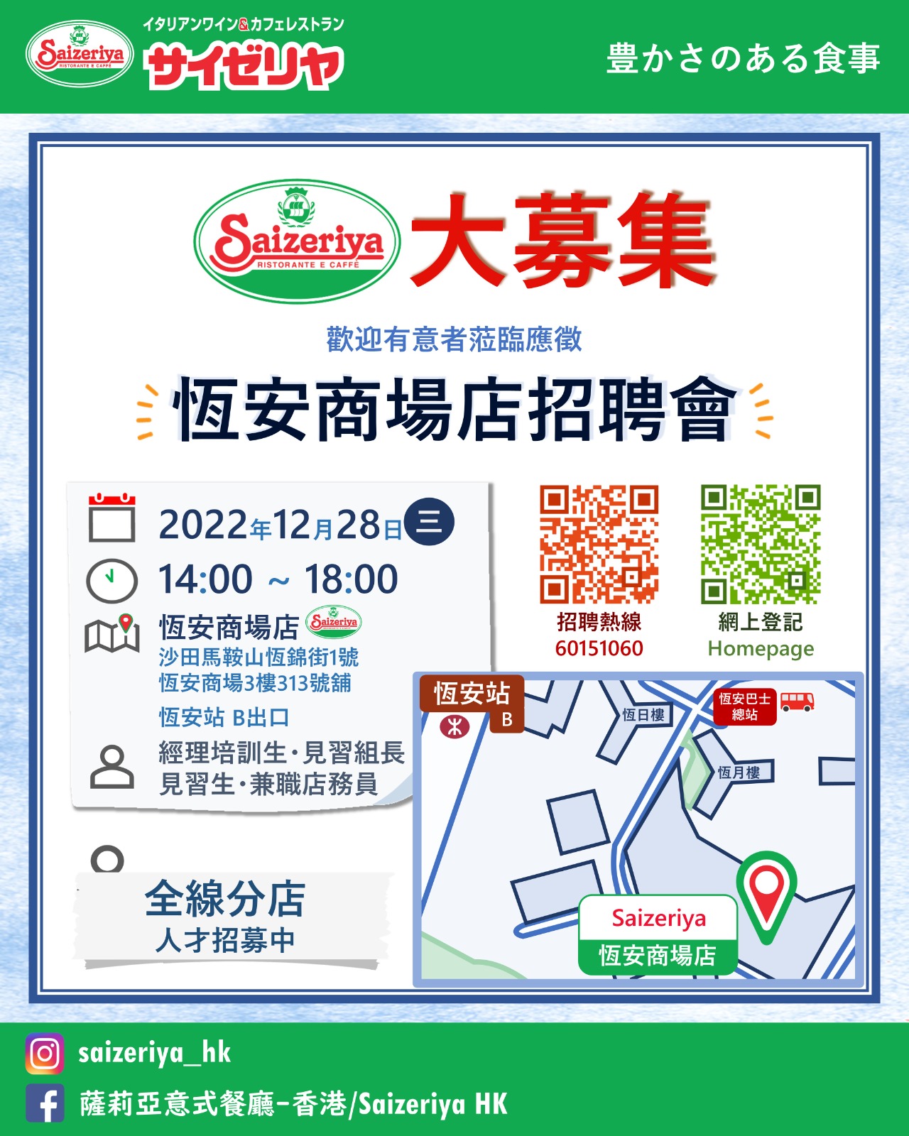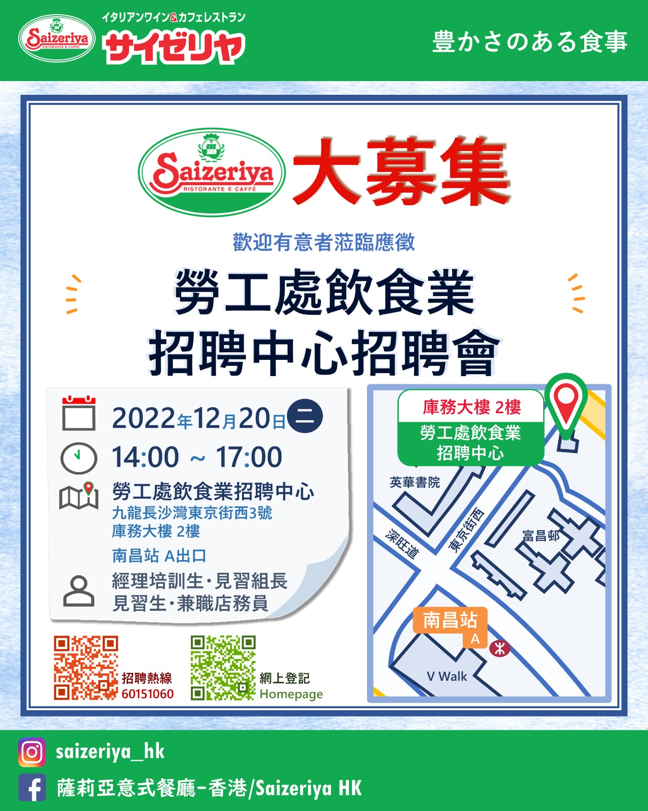 【人才招募】勞工處飲食業招聘中心招聘會(12月20日) 為擴張到200間分店做好準備🙋🏻‍♀️🙋🏻🙋🏻‍♂️!…