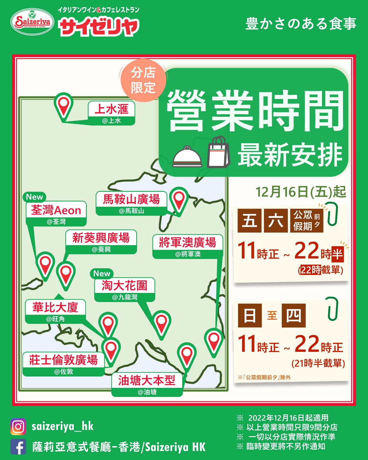 【營業時間更新】星期五/六/公眾假期前夕營業至22:30 (部分分店限定-追加九龍灣淘大店/荃灣Aeon店)