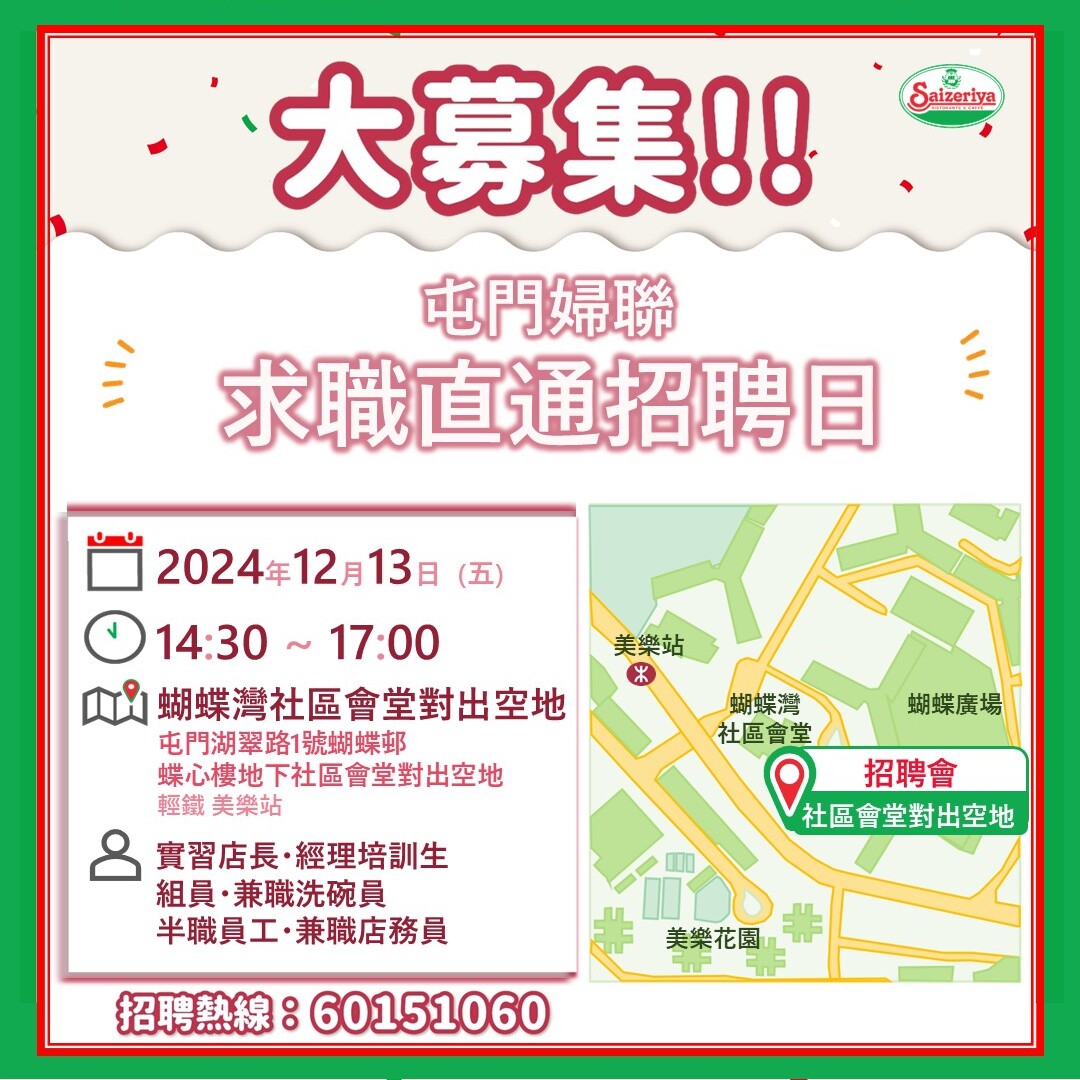 【人才招募】屯門婦聯求職直通招聘日(12月13日)06/12/2024更多 【平日限定】超值下午茶餐 (分店限定・現正供應)04/12/2024更多 【魷魚圈圈】香焗魷魚圈 (分店限定・現正供應)04/12/2024更多 【冬日甜蜜滋味】北海道牛乳千層蛋糕 (分店限定・現正供應)02/12/2024更多 【冬日甜蜜滋味】京都宇治抹茶千層蛋糕 (分店限定・現正供應)02/12/2024更多 【新店】將軍澳Popwalk2店(現已開業)28/11/2024更多
