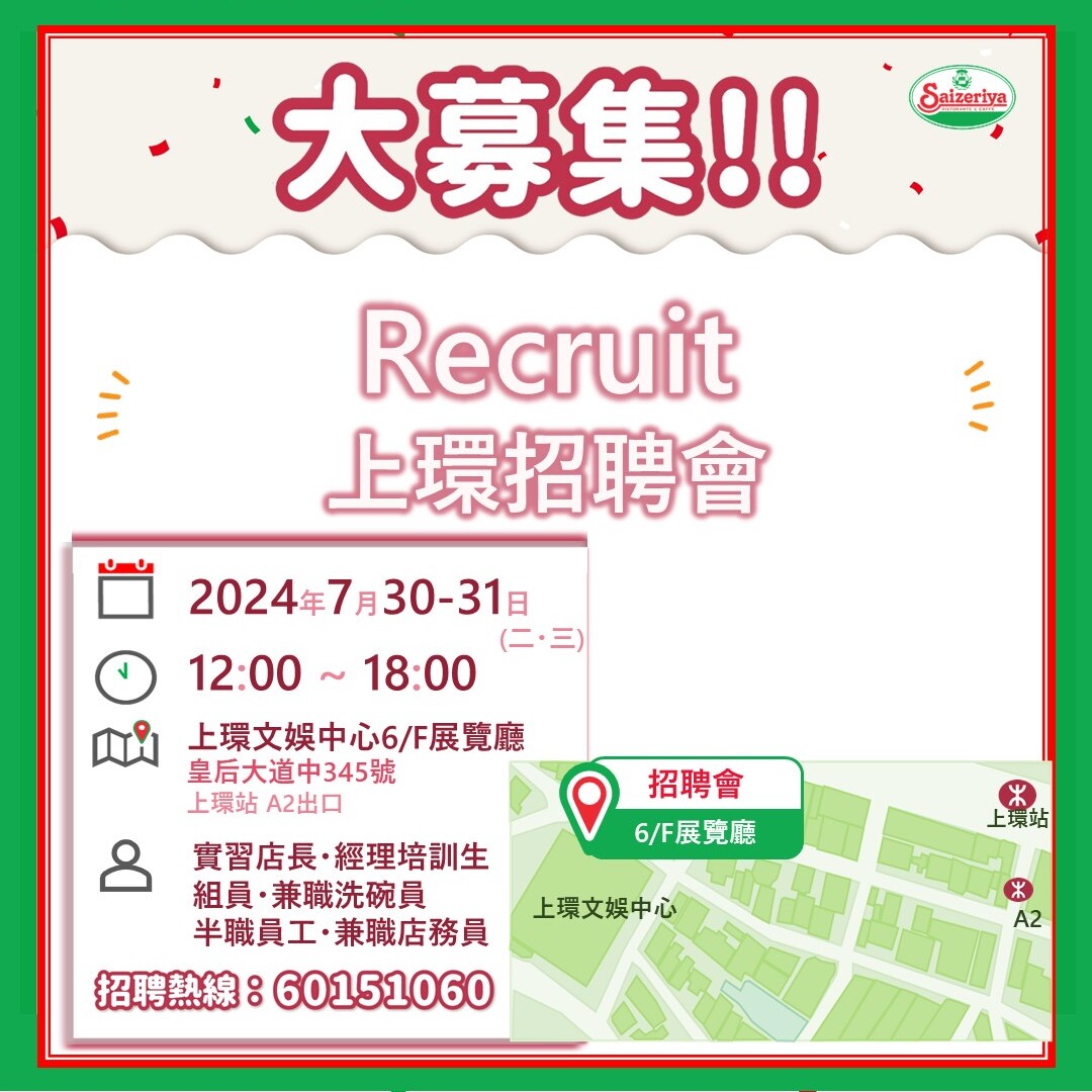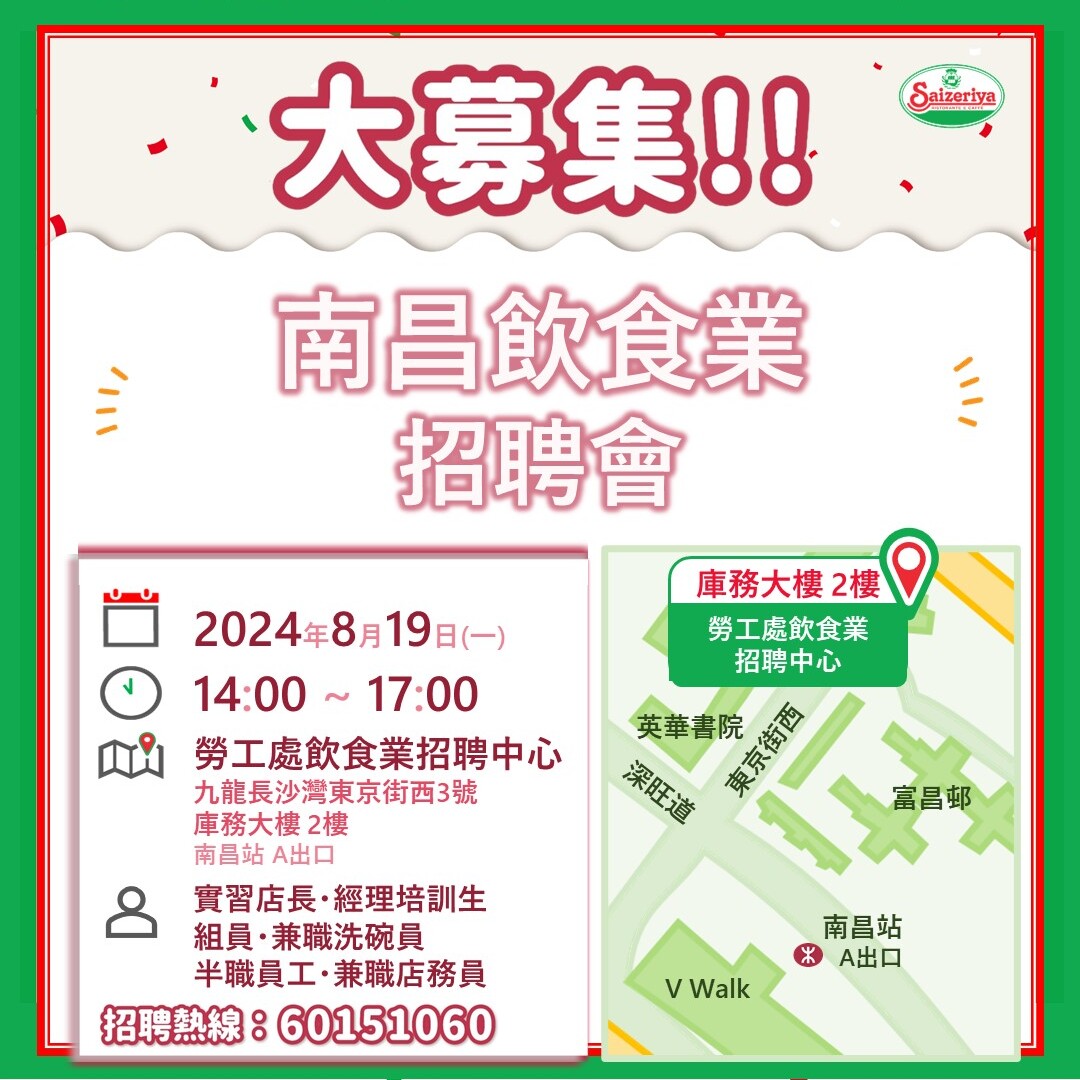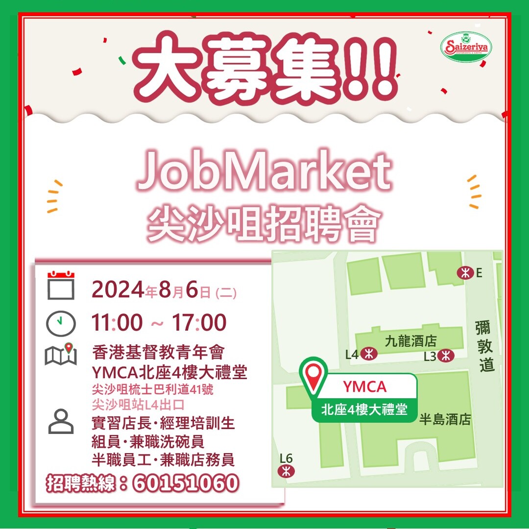 【人才招募】南昌飲食業招聘會(8月19日)12/08/2024更多 【結業啓示】九龍灣淘大店(最終營業日9月8日)11/08/2024更多 【人才招募】明報JUMP職業博覽(8月17日)10/08/2024更多 【人才招募】JobMarket尖沙咀招聘會(8月6日)30/07/2024更多 【人才招募】Recruit上環招聘會(7月30-31日)23/07/2024更多 【驚喜價格】白帶泡葡萄酒 (全線分店・現已登場)18/07/2024更多