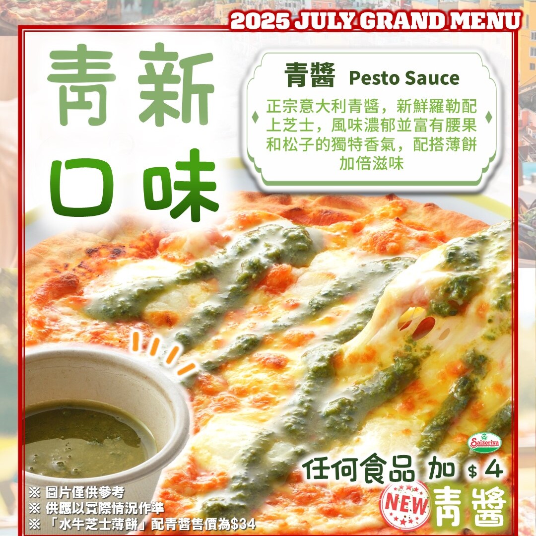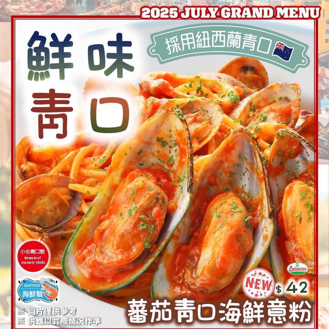 【青新配搭】青醬單品 (全線分店・現正供應)28/07/2025更多 【雙重惹味】洋蔥蒜蓉燒雞配歐陸腸 (全線分店・現正供應)27/07/2025更多 【瘋狂的水】意式瘋狂水煮魚 (全線分店・現正供應)26/07/2025更多 【新店預告】藍田啟田商場店 (7月尾見)24/07/2025更多 【鮮味青口】蕃茄青口海鮮意大利粉 (全線分店・現正供應)24/07/2025更多 【白薄餅】白汁黃金粟米薄餅 (全線分店・現正供應)23/07/2025更多