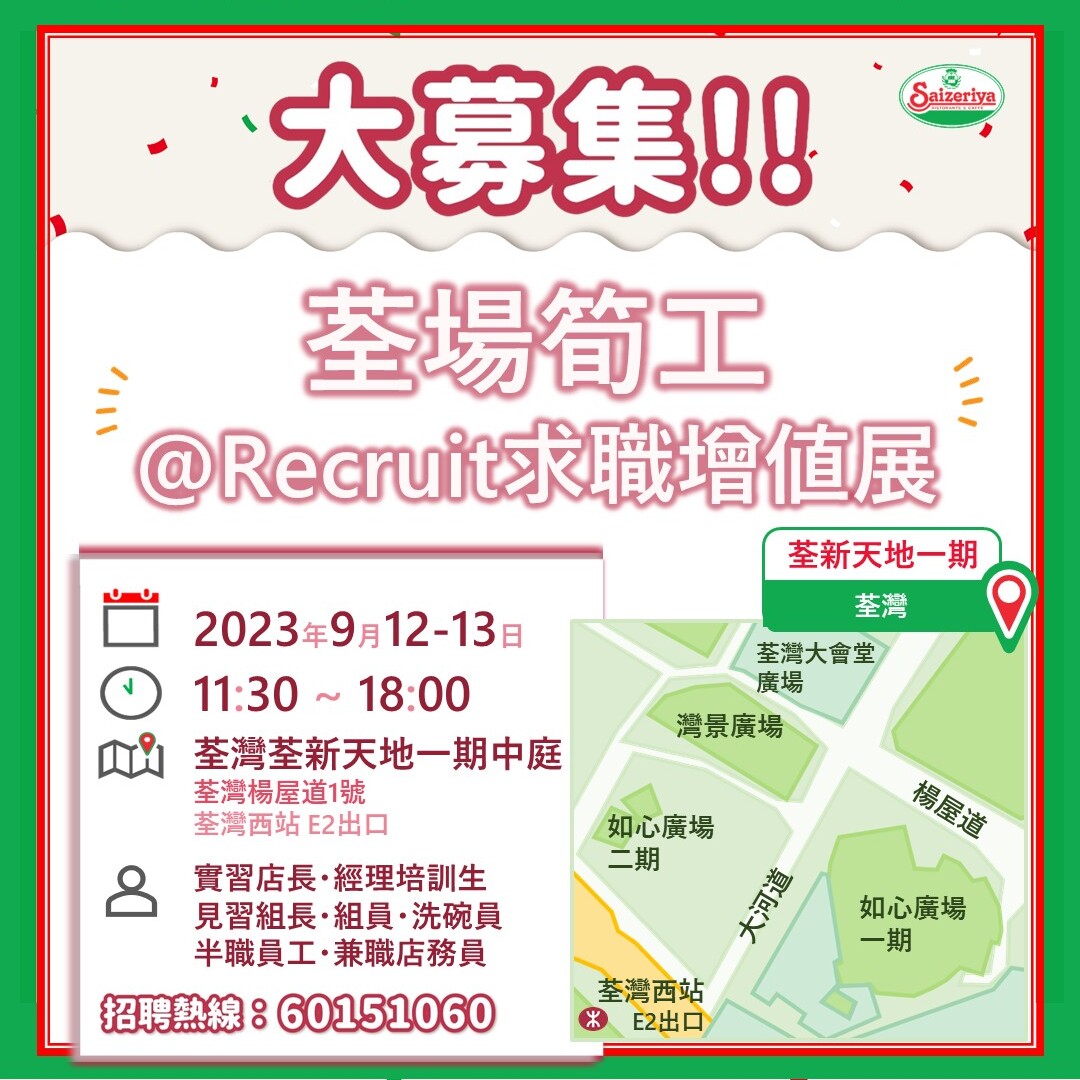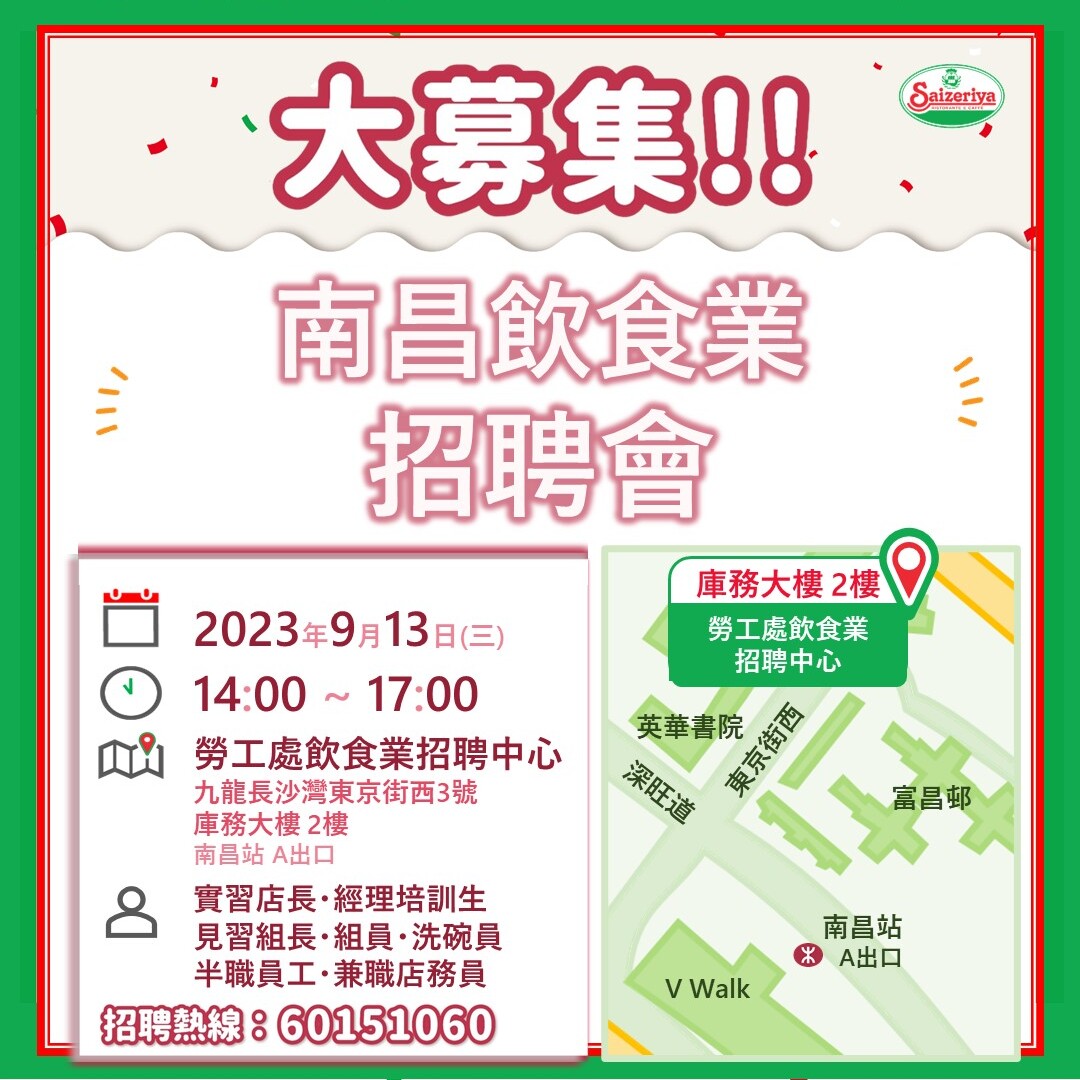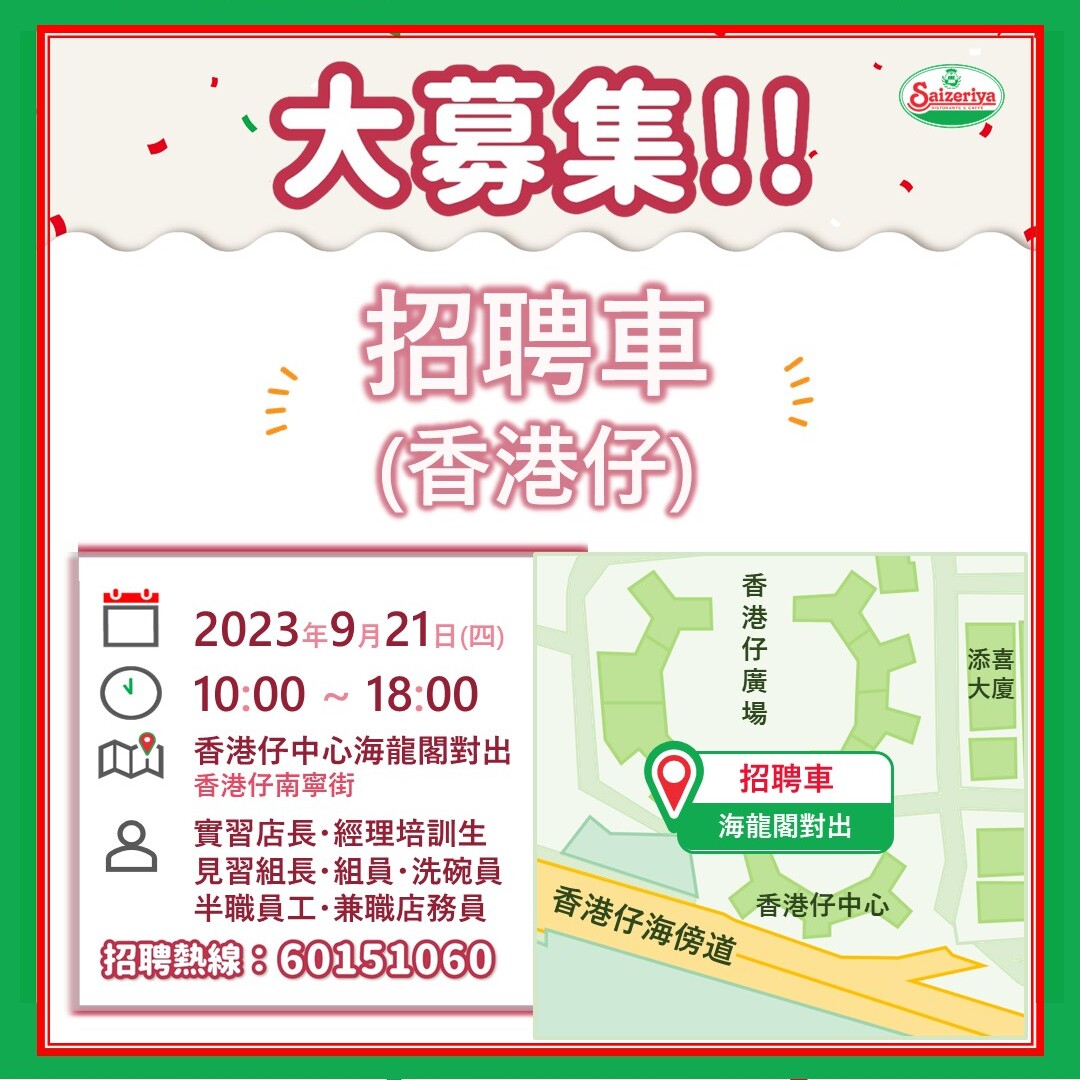 【新店預告】大埔大元商場店(10月中見)16/09/2023更多 【人才招募】招聘車 (香港仔)(9月21日)14/09/2023更多 【搬遷啓示】大埔大元街市店(最終營業日10月15日)10/09/2023更多 【人才招募】南昌飲食業招聘會(9月13日)06/09/2023更多 【人才招募】荃場筍工@Recruit求職增値展(9月12-13日)05/09/2023更多 【人才招募】Job Market招聘會(9月11日)04/09/2023更多