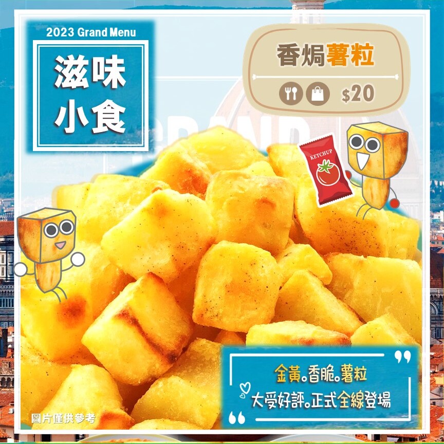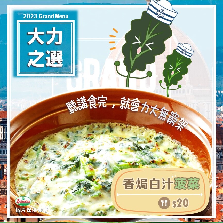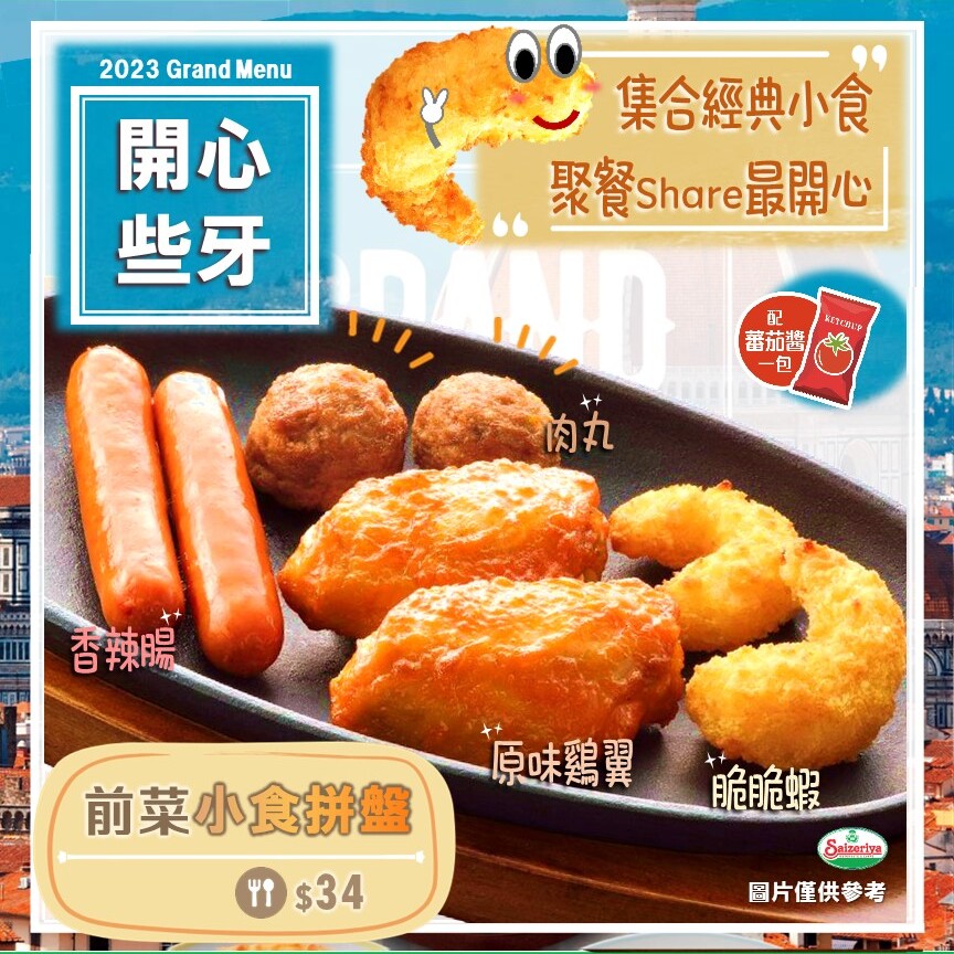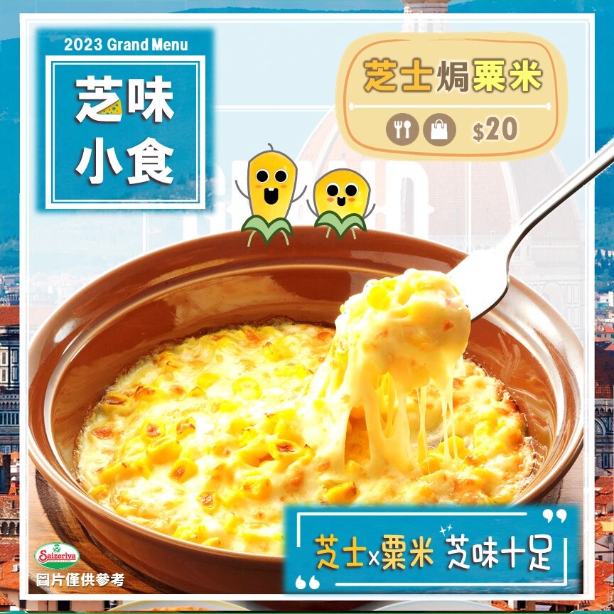 【2023Grand Menu】多重口感 – 野菌雞肉薄餅15/01/2023更多 【2023Grand Menu】開心分享 – 前菜小食拼盤14/01/2023更多 【2023Grand Menu】大力之選 – 香焗白汁菠菜13/01/2023更多 【2023Grand Menu】芝味小食 – 芝士焗粟米🌽12/01/2023更多 【新店】觀塘1亞太中心店(現已開業)12/01/2023更多 【2023Grand Menu】滋味小食 – 香焗薯粒11/01/2023更多