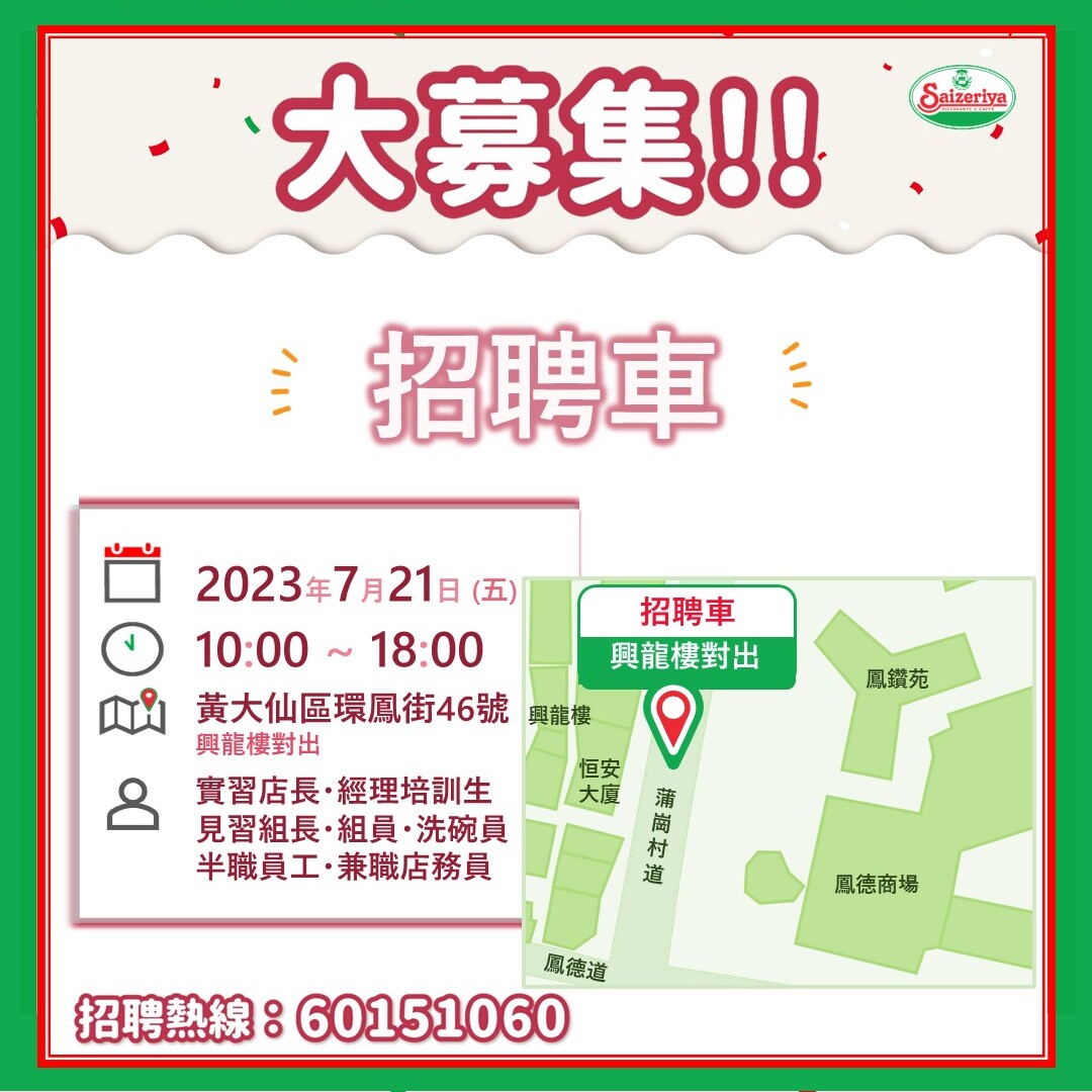 如果您的商店符合上述條件,請發送電子郵件至:property@saizeriya.com.hk