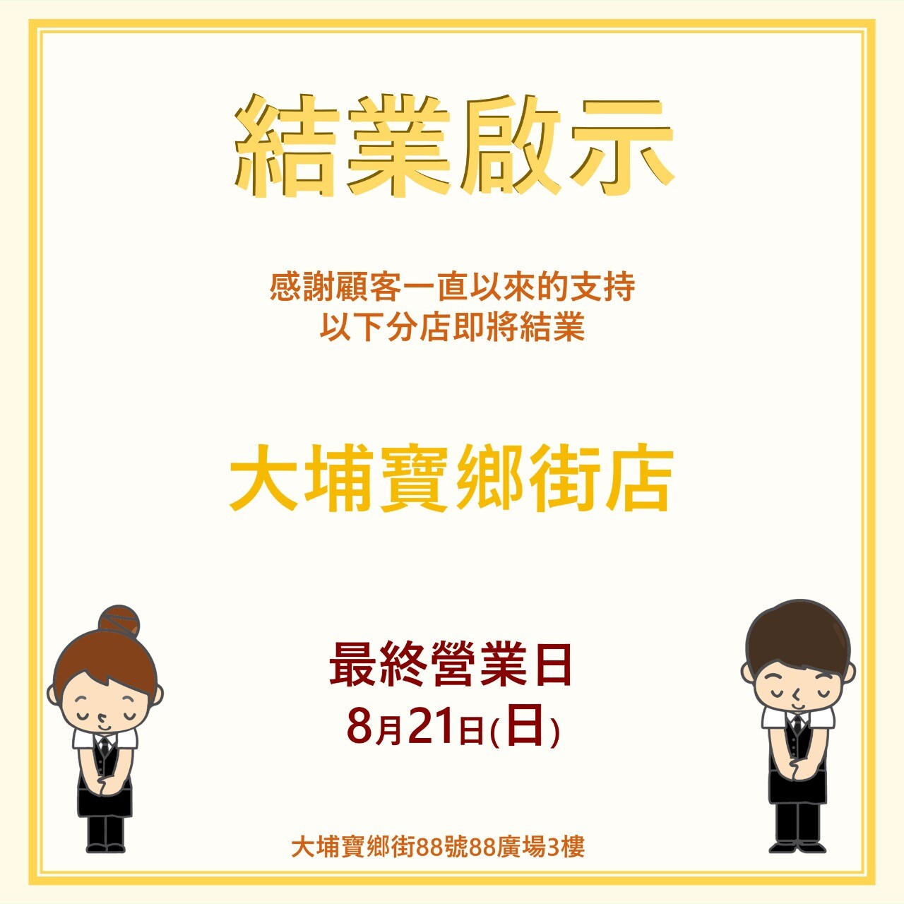 如果您的商店符合上述條件,請發送電子郵件至:property@saizeriya.com.hk